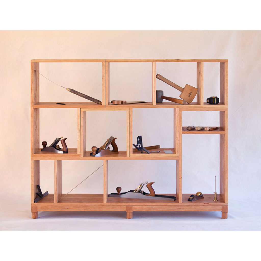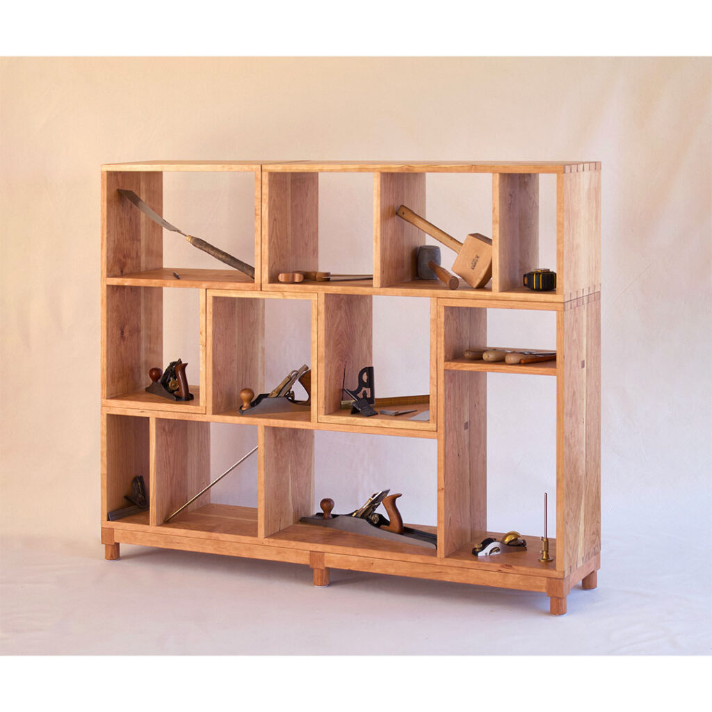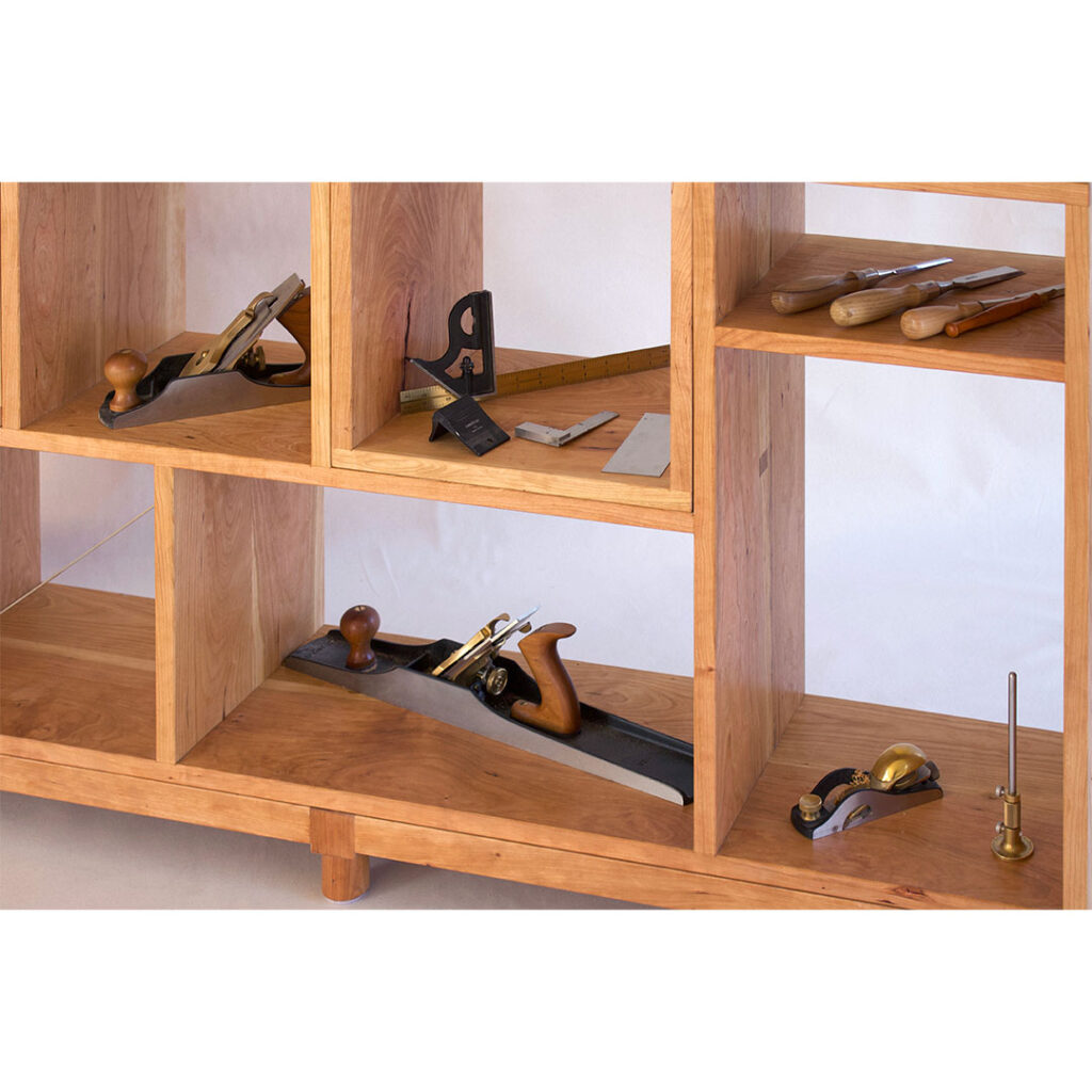 Here’s another modular shelving unit made of cherry. It’s holding all the tools necessary to build such a thing. It measures 48 x 60 x 12.”