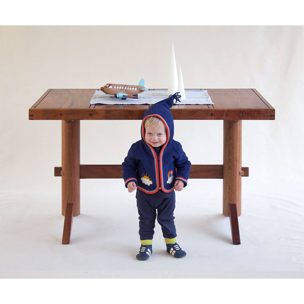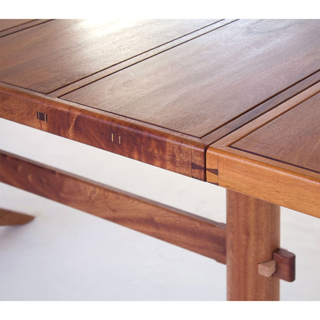 This is an extending table made out of sapele.